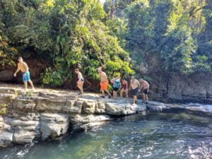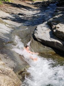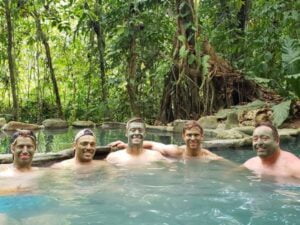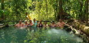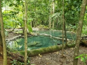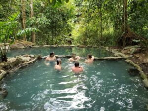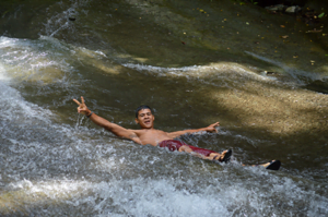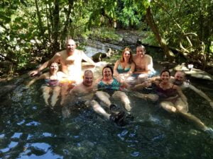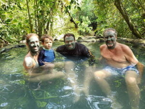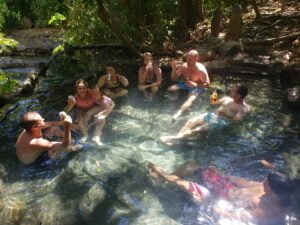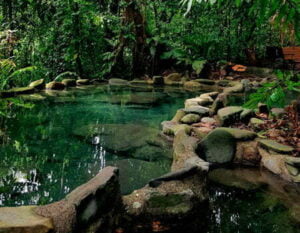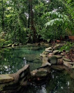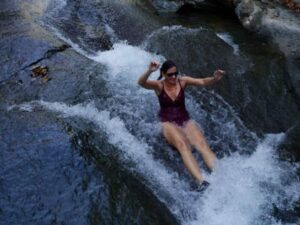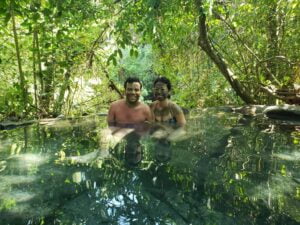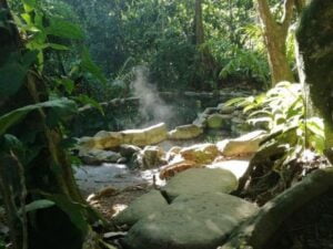 On site one will find 5 rustic hot spring pools. Once in the pools, one can relax and use the natural clay and mud for facial mask. After the clay dries, it leaves your face felling squeaky clean and silky smooth. There is also a stream where one can swim in the small pools and relax, or go down the 30 ft. natural waterslide as many times as you want. There are a few indigenous artifacts onsite as well.