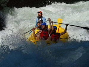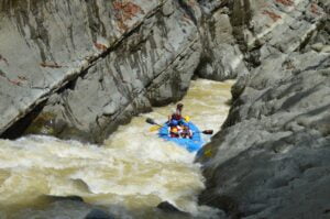 This section has sweeping turns around bolders and 3 to 4 foot drops which classify it as lll, IV and IV+. The trip finishes after passing though a mini-canyon with high rock walls.