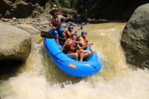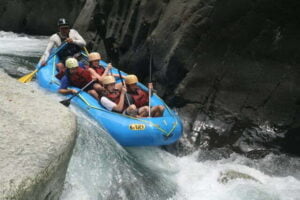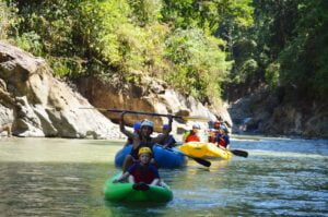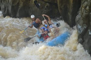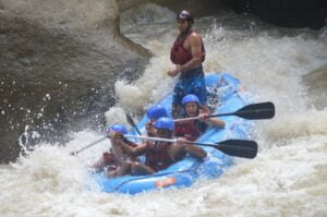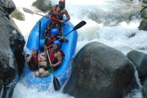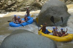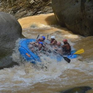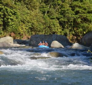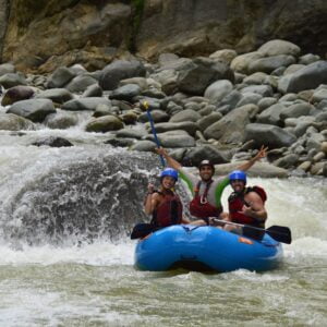 This is the finest whitewater you will find in the area from January though April when the water level is at its navigable best. The starting point on the “Chorro” is located 35 minutes east of Manuel Antonio. Once you pass through a couple of local towns and wind your way into the river valley, the action begins.